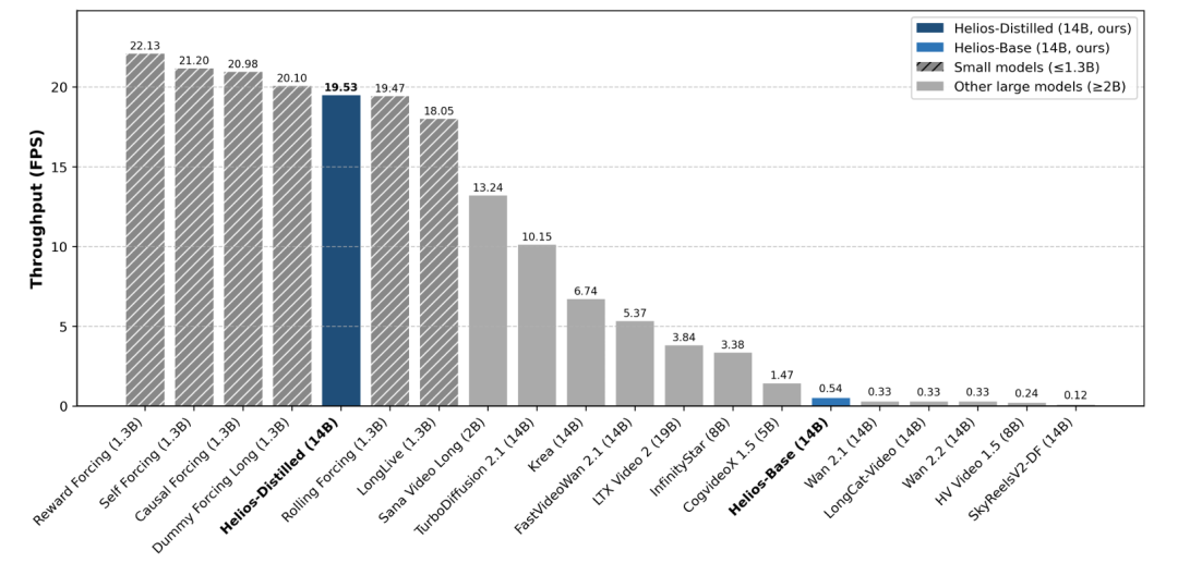 Helios is the first 14B-parameter large model capable of running on a single NVIDIA H100 GPU at 19.53 frames per second (FPS).