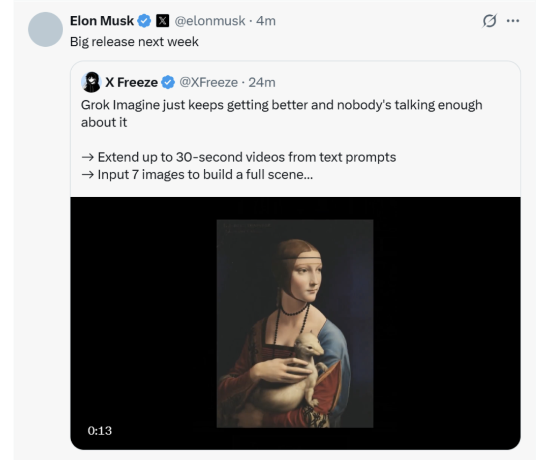 When OpenAI announced this week the shutdown of its AI video generation model Sora, which had once amazed the world, the entire tech community was shaken. Just hours later, Elon Musk took to the X platform to proclaim that xAI would be upgrading its video generation product, Grok Imagine, with an 'epic' overhaul and would be 'doubling down' on this track (translation: 'track' or 'field'). This retreat by one and advance by another not only reveals the fierce competition in the AI video realm but also raises a fundamental question: Is Sora's exit a strategic retreat by OpenAI, or is AI video commercialization itself an immature 'false proposition'?