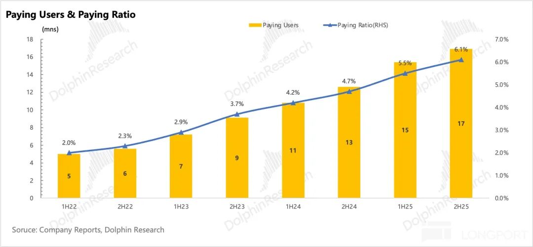 - In terms of growth, subscriber numbers increased by 2.8 million in the first half of the year but only by 1.5 million in the second half. Considering the overall decline in MAU, the in-line subscription penetration rate was partly due to a shrinking denominator, suggesting lower actual conversion quality.