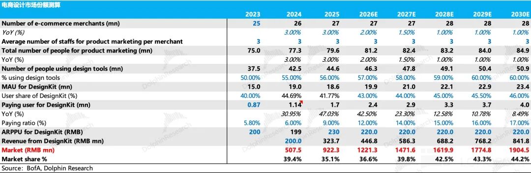 On the B-end, the financial report revealed that the company will hold an Imaging Festival in June this year to launch new productivity products. Based on Dolphin Research's calculations, the current market size for Meitu's involvement in product photography and live-streaming commentary segments is only around 2.5 billion RMB. This is a result of the company actively avoiding competition with tech giants, giving it a somewhat precarious position. Undoubtedly, the company's decision to proactively expand into vertical B-end scenarios to compete with general-purpose large models is correct. However, considering the financial data, it is challenging for capital to place high expectations on a B-end business experiencing slowing growth in both MAU and subscription penetration. The company needs to demonstrate greater resilience in its future quarterly core data disclosures.