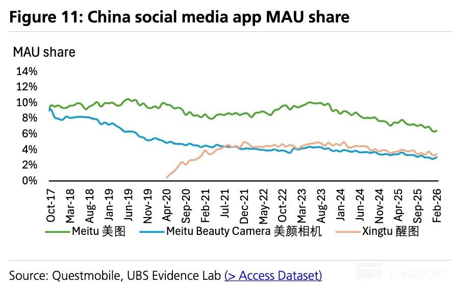 - In terms of iteration, LLM iteration speeds have significantly accelerated (e.g., MiniMax completed its iteration from M2.5 to M2.7 in just one month). Moreover, the code generation capabilities of various models continue to improve, enabling zero-code development that allows ordinary users to easily build scripts or even standalone software using large models. The trend of 'everyone can create tools' has, to some extent, weakened Meitu's advantage in functional iteration and impacted light-use scenarios. Of course, Meitu still maintains certain competitiveness by building end-to-end capabilities in deep workflows and combining aesthetic demand discovery and amplification.
