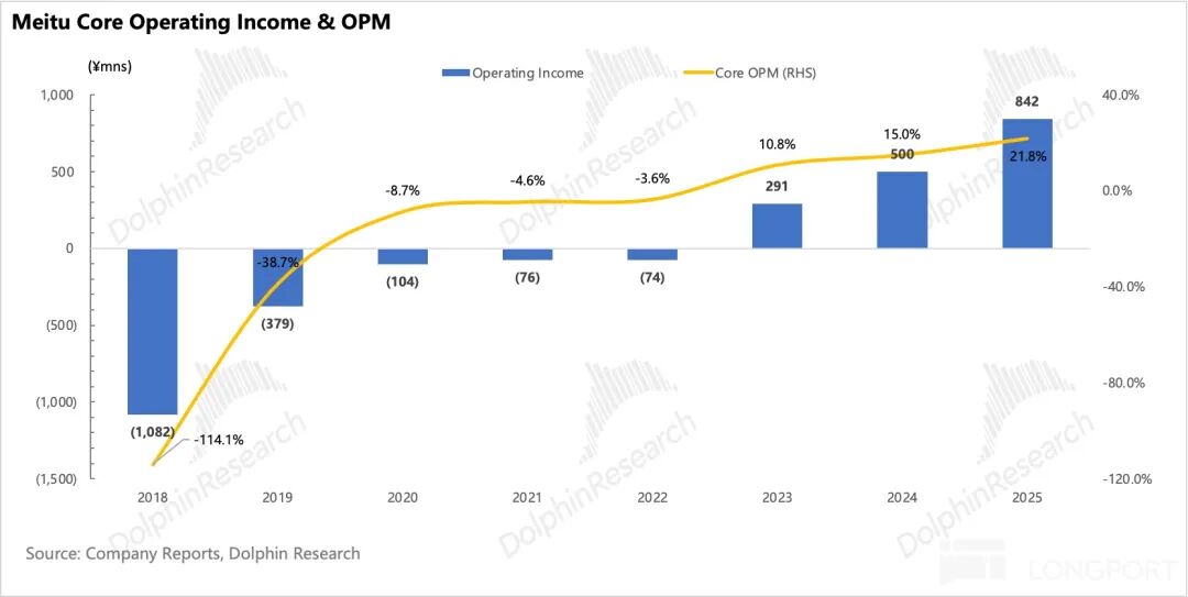 Despite the significant miss in gross profit, core operating profit reached 466 million RMB, an 82.6% year-over-year increase, largely in line with expectations. This was primarily due to Meitu's effective control of operating expenses, which exceeded expectations across the board.
