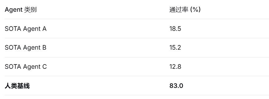 The results are sobering: even the most advanced Agents have a pass rate below 20%. More telling is the failure mode: most tasks stall before reaching 30% completion, with critical failures often occurring in the early stages.