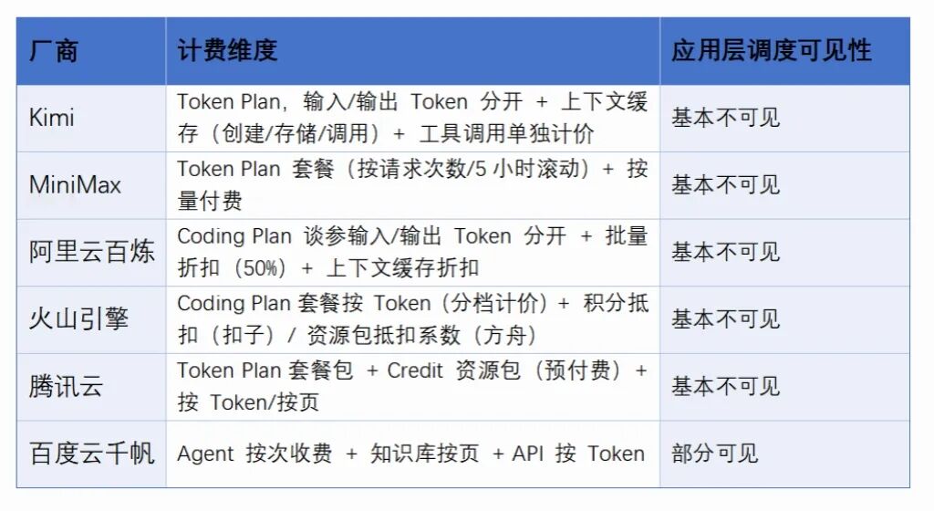 API transparency suits developers; application transparency suits enterprise buyers. When explaining to your boss, “I invoked the Deep Research Agent 500 times” is more convincing than “I consumed 1 million tokens.” Interestingly, among six providers, only Baidu displays agent costs explicitly. The other five bundle Harness scheduling costs into tokens.