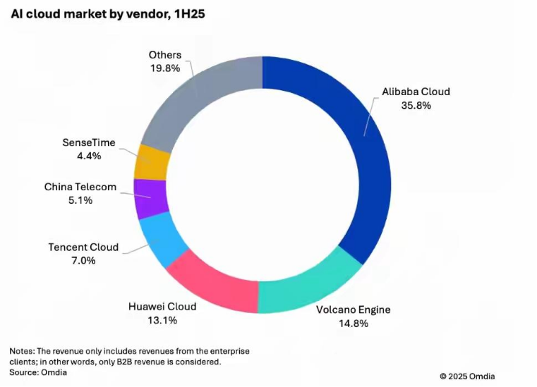 Currently, Alibaba Cloud leads China's AI cloud market with a 35.8% share; Volcano Engine ranks second with 14.8%. The battle for Tokens is imminent.