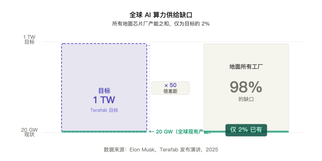 What Terafab truly addresses is a more upstream issue: there is a structural gap of an order of magnitude in global AI computing supply, which cannot be filled by the existing system.