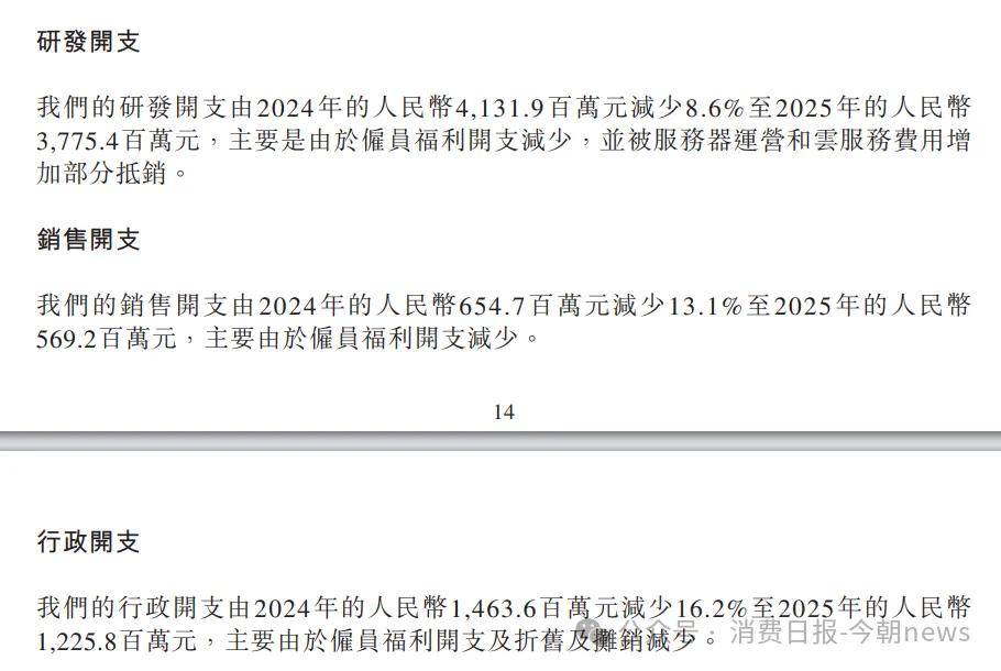 In 2025, R&D spending fell 8.6% to 3.775 billion yuan (its first decline in three years), sales expenses dropped 13.1% to 569 million yuan, and administrative expenses decreased 16.2% to 1.226 billion yuan, a 238 million yuan reduction.