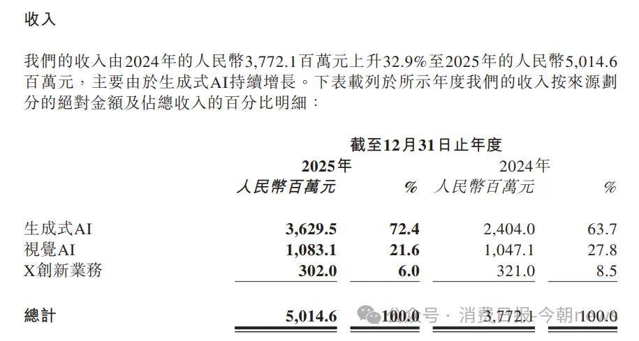 Generative AI, the primary business, generated 3.63 billion yuan in revenue, up 51.0% year-on-year and accounting for 72.4% of total revenue, becoming the growth engine.