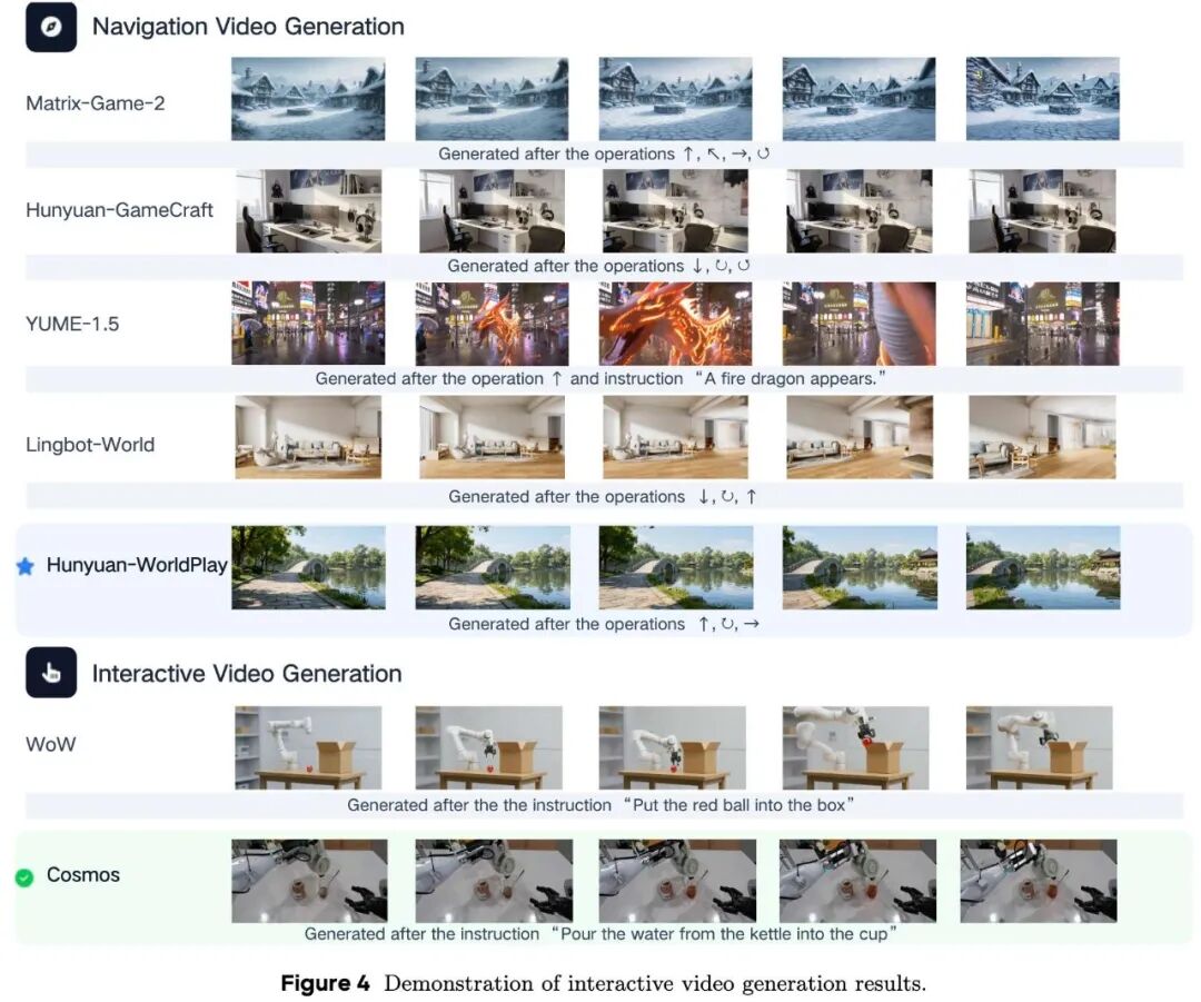 Interactive Video Generation: Compared models such as Matrix-Game-2, Hunyuan, and Cosmos. Experiments demonstrated that Cosmos has significant advantages in physical realism and complex interaction operations.