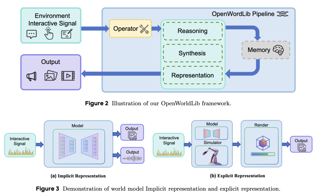 Based on the aforementioned, world models need to possess the following capabilities: receiving inputs from the complex physical world, understanding the physical world, maintaining long-term memory during interactions, and supporting multimodal outputs. Although previous research has proposed designs for unified world model frameworks, they lack concrete engineering implementations or even unified standards. This section details the specific design of the OpenWorldLib framework, as shown in Figure 2.