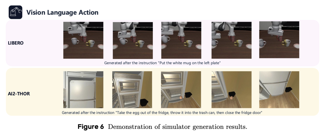 VLA Evaluation: Verified embodied agents' action planning capabilities using AI2-THOR and LIBERO simulation environments.