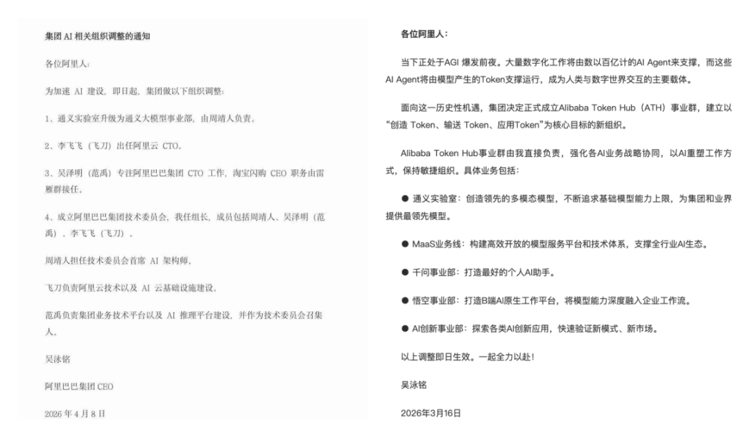 On April 8, Alibaba CEO Wu Yongming issued his second company-wide letter within three weeks. If the establishment of the ATH Business Group on March 16 was a land grab, consolidating scattered AI assets into a single basket using Token logic, then this letter was about dividing the fields and assigning names to each key link.