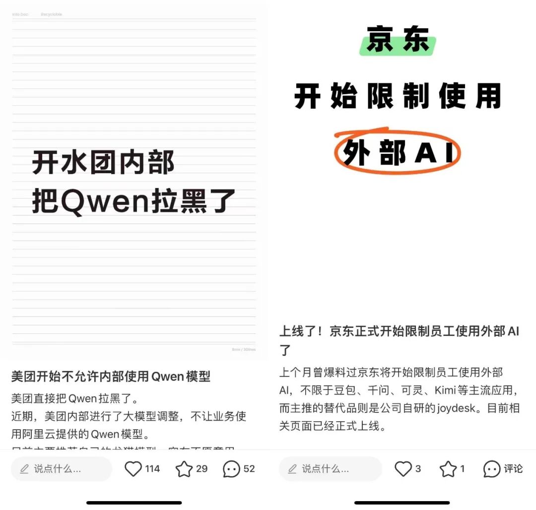 Onlookers joked, 'Is this what honest business warfare looks like?' However, the real internet business wars might be even more straightforward. Around the same time, both JD.com and Meituan were reported to have imposed strict restrictions on employees' use of external AI large models.