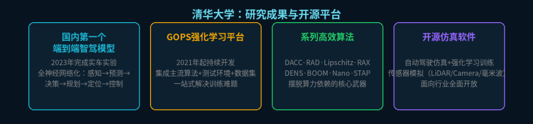 Additionally, Tsinghua has made autonomous driving simulation software and reinforcement learning training software available to the industry, aiming to support the entire industry's development through open-source methods. The GOPS platform integrates mainstream algorithms, testing environments, and datasets, striving to solve enterprise training challenges in a one-stop manner.