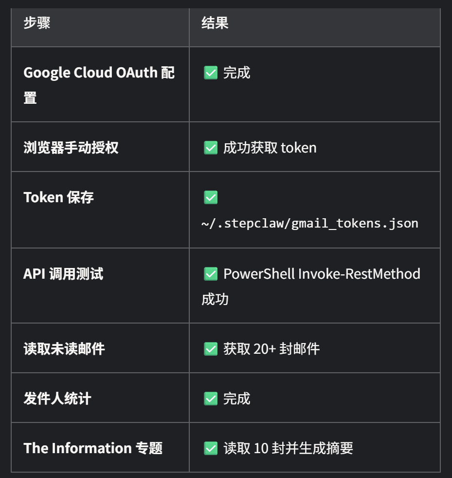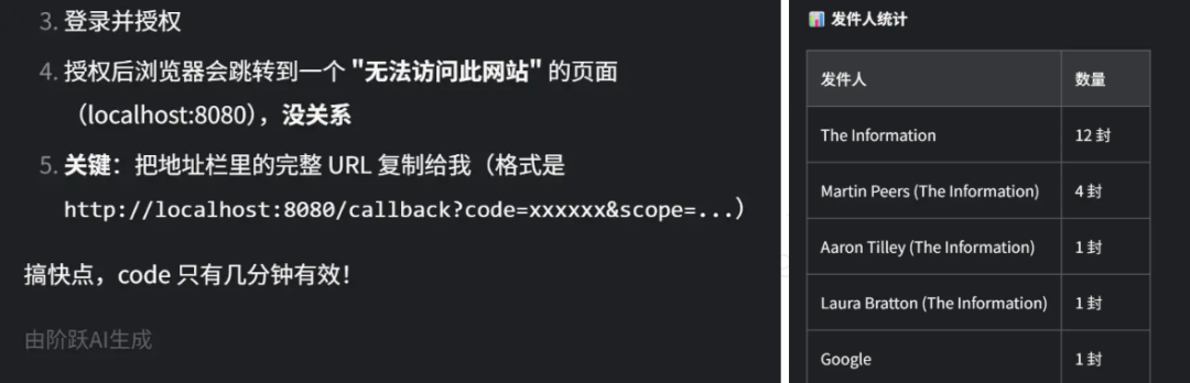 The first to complete the task was StepClaw from StepFun. Although it repeatedly hinted that I could manually import email data for analysis (much like my coworker who shirks work), after I insisted on 'no human intervention,' it bypassed the Token acquisition hurdle by writing a script that could run in a web browser to read the Token itself. Under its repeated urging to 'hurry up,' the connection was finally successful.