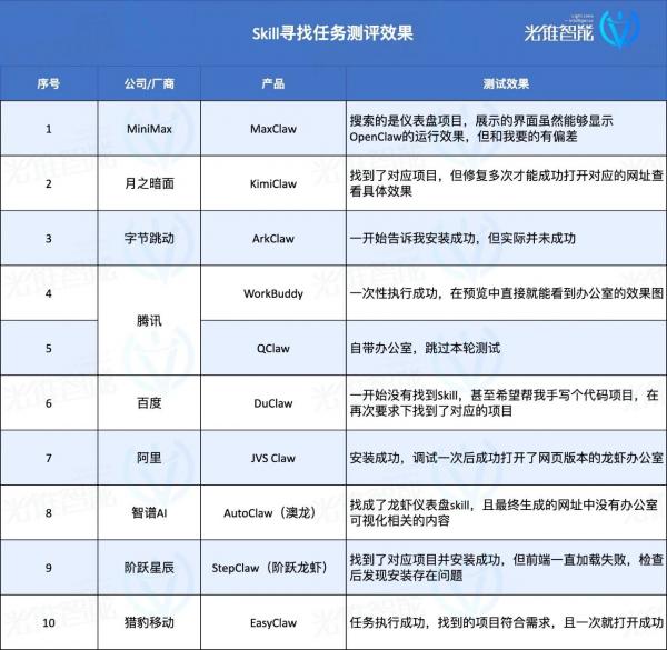 Vendor pre-installation is the start of a good user experience. I asked the crayfish to search for the initial pre-installed Skills in these products and send me a table. Zhipu stood out, finding all products accurately and providing mostly correct results.