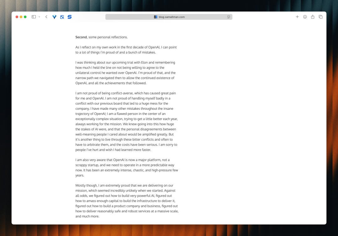 Sam Altman releases a lengthy blog post in response to the assaults.