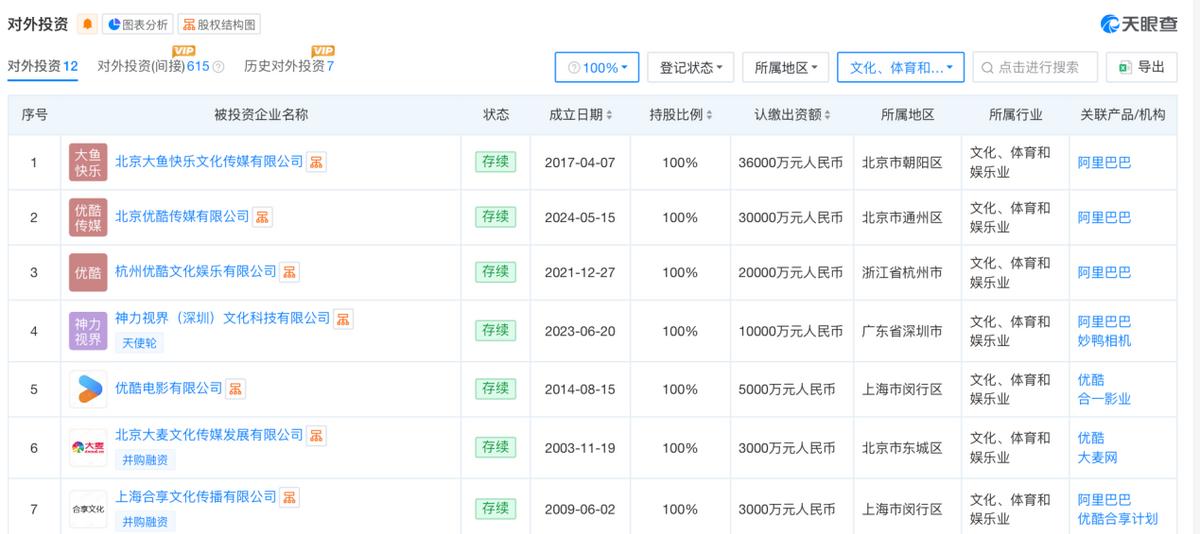 Tianyancha app information reveals that Orca Entertainment, a wholly-owned subsidiary, includes Youku. For Alibaba, Youku remains at the forefront of its content ecosystem.