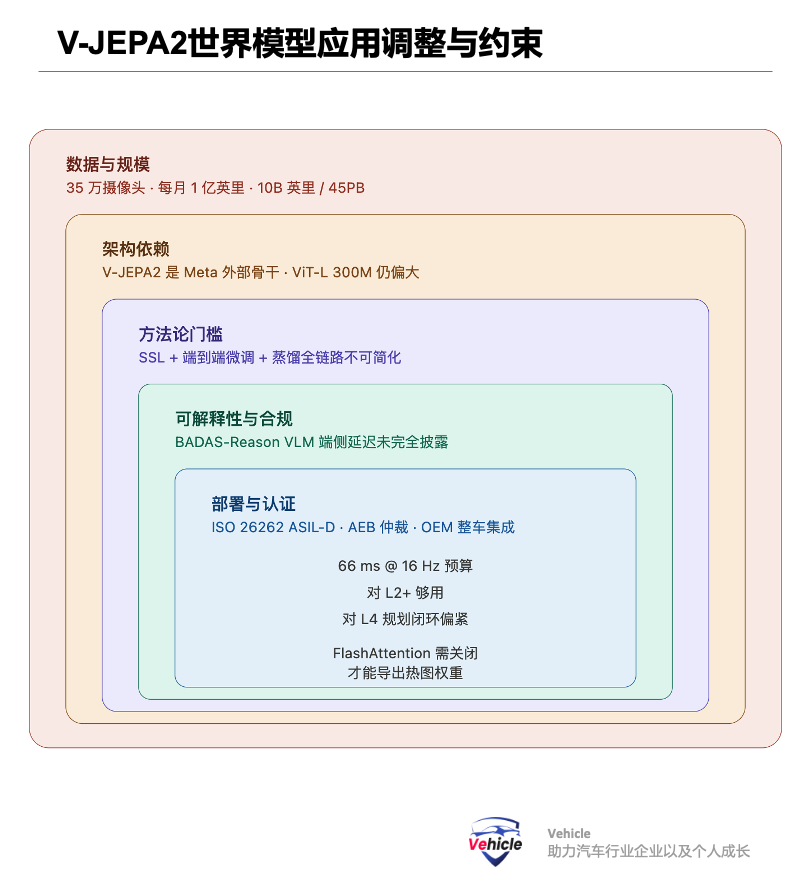 Deployment Layer: Currently, all tests are conducted on Jetson Thor and A100. The true automotive-grade functional safety certification (ISO 26262 ASIL-D), OEM vehicle integration, and arbitration logic with existing FCW/AEB pathways are still in the productization stage. The 66 ms budget is sufficient for L2+, but may be tight for L4 planning closed loops.
