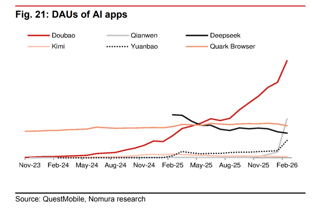 During the Spring Festival, Alibaba invested heavily in the Qianwen App, disclosing in its financial report that the MAU exceeded 300 million in February. However, this is currently insufficient to challenge the aforementioned “duopoly” judgment.