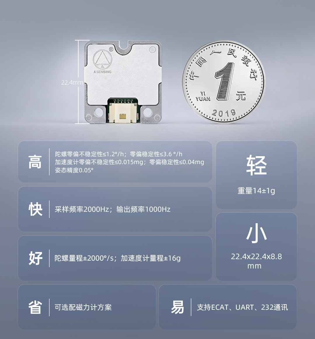 This IMU module achieves a Attitude measurement accuracy (pose measurement accuracy) of 0.05°, with an output frequency of 1000Hz and extremely low latency, enabling real-time capture of the robot's slight tilts and shakes to effectively avoid imbalance caused by response lag.