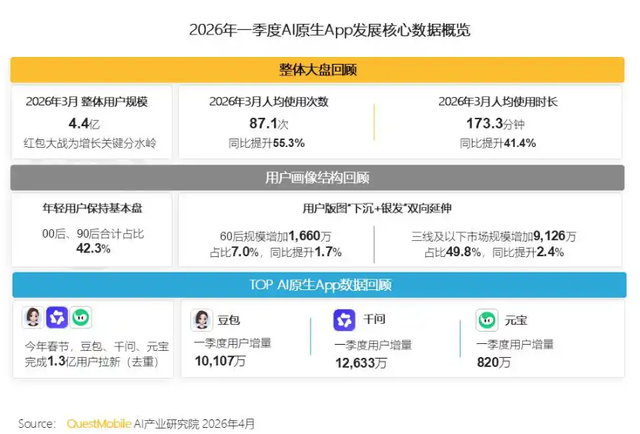 Data from QuestMobile reveals that as of March 2026, China's AI-native apps boasted 440 million monthly active users (MAUs).