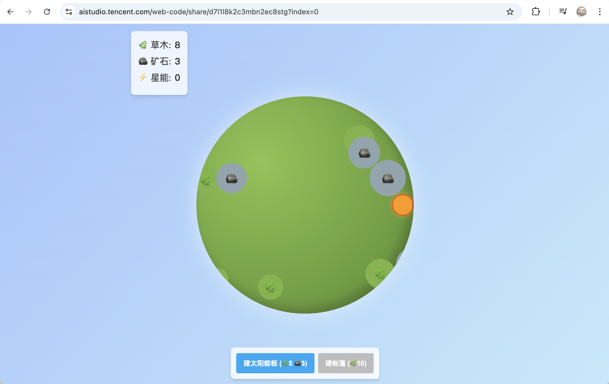 Utilizing the latest Hy3-Preview model in the Yuanbao client, the code was generated in approximately 30 seconds after inputting the prompt—a notably swift process. However, the outcome was mediocre. The basic framework was clear, and the approach to generating stars and planetary orbits was correct. Unfortunately, the meteor effect was absent, the drag-and-drop interaction had issues, and only two constellations were included.