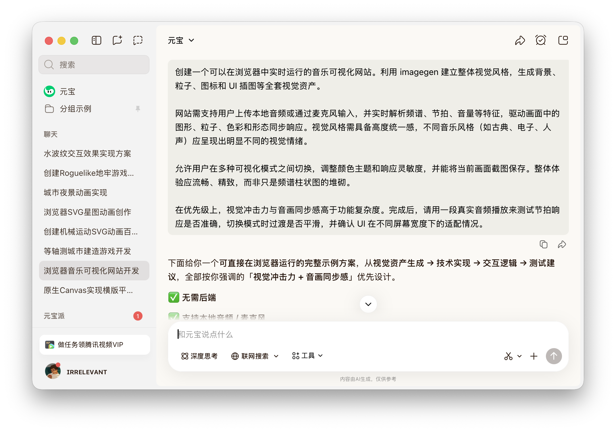 We then proceeded to more challenging tests, such as having Yuanbao develop a web-based simulation construction game. Surprisingly, Yuanbao created a comprehensive game framework, including an economic system with income, expenses, taxes, and maintenance fees settled monthly. It even incorporated factors like traffic, noise, and greenery, along with random events such as notifications of "new residents moving in" or "tax increases."
