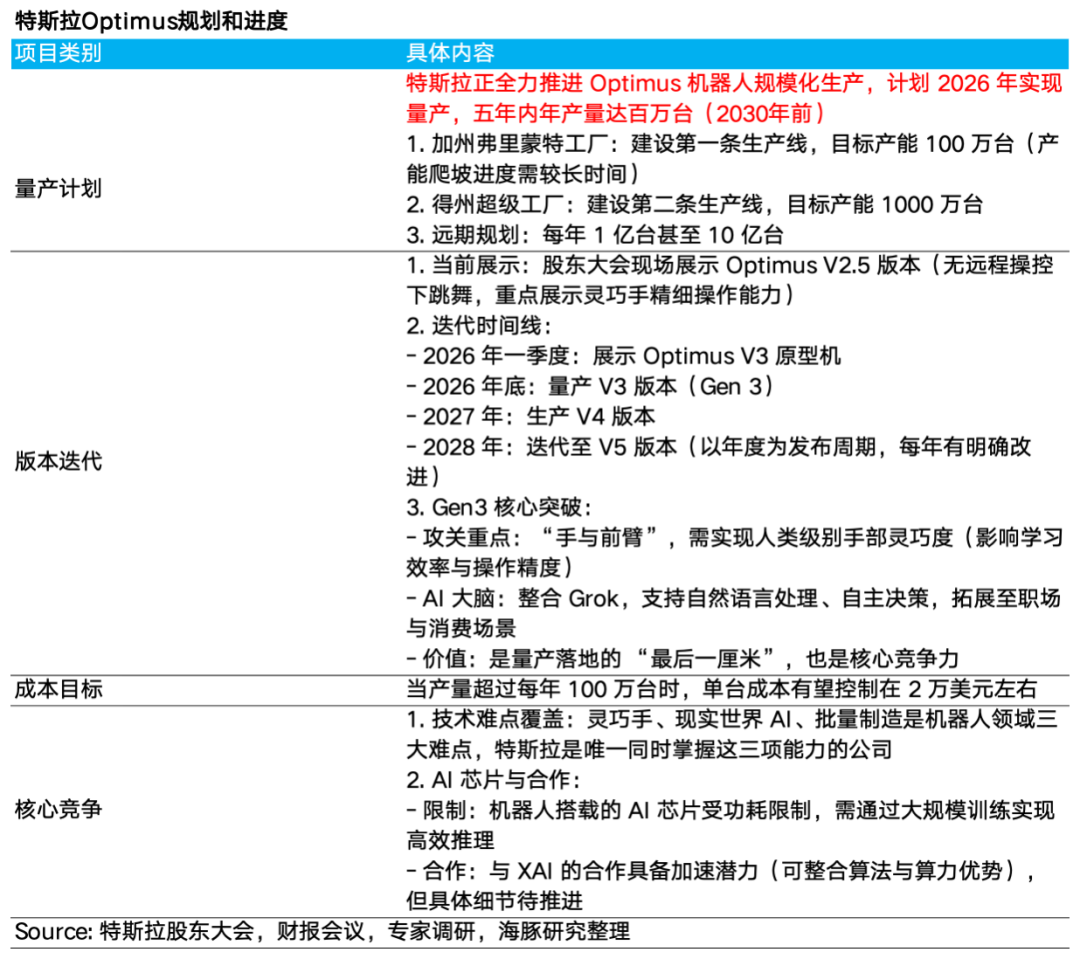 ① Optimus: V3 Launch Delayed to Mid-Year, 2027 Marks Start of Mass Production