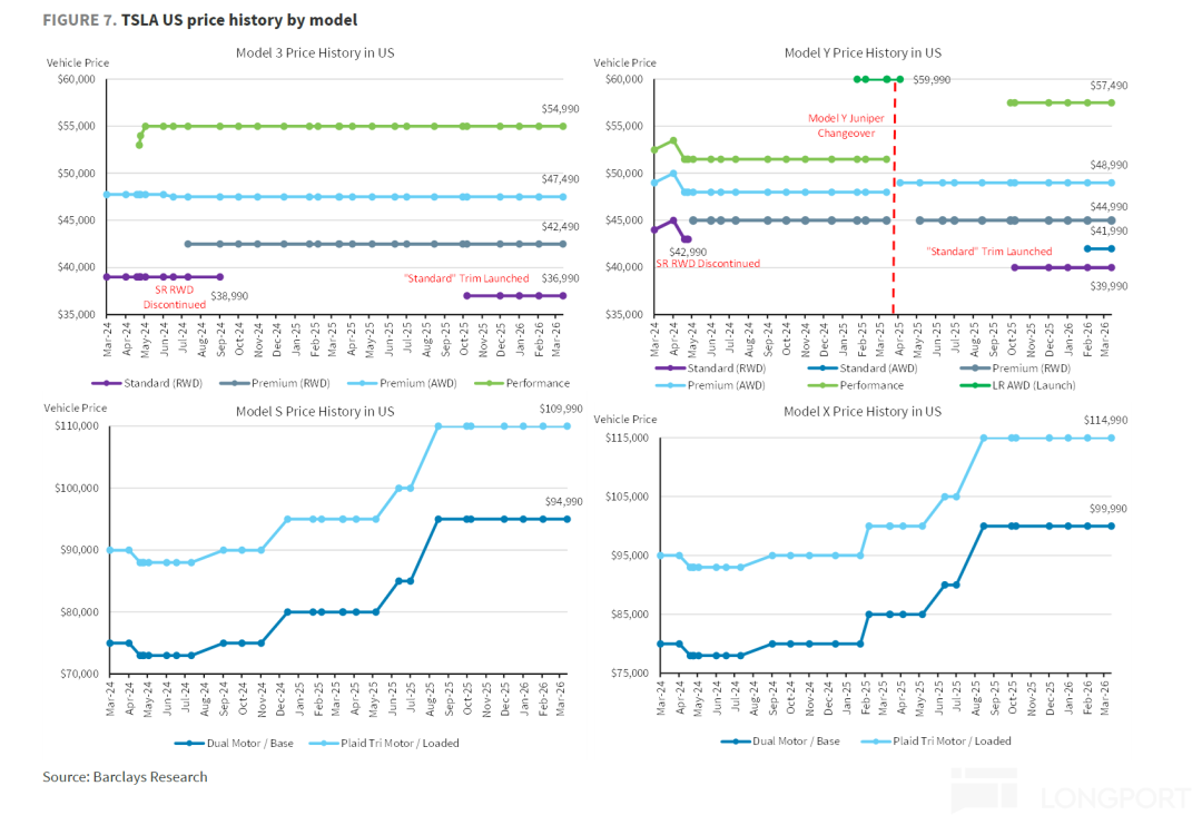 Although the official MSRP for the Model 3/Y remained stable (a more price-competitive base version was pre-launched in Q4 2025 to hedge against subsidy reductions), the company significantly rolled back promotional discounts from Q4 2025. For example, the highly attractive “0% down payment leasing program” introduced in Q4 2025 was discontinued in Q1 2026, and leasing rates rose sharply sequentially.