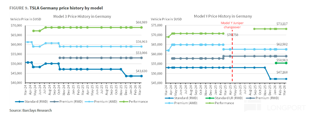 In Q1, Tesla maintained the price reductions for the standard versions of the Model 3/Y in Europe that were implemented in Q4 2025 and offered 0% interest loans for up to 5 years in some markets. Given Europe's current high-interest-rate environment, the interest-free policy effectively reduced purchase costs for consumers.