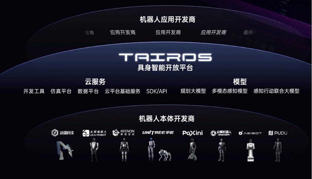 In July last year, Tencent’s RoboticsX Lab released the embodied AI open platform Tairos ('Titan Screw'), the first modular embodied AI software platform in China to provide large models, development tools, and data services, serving as a linking platform between robot 'bodies' and 'brains.'