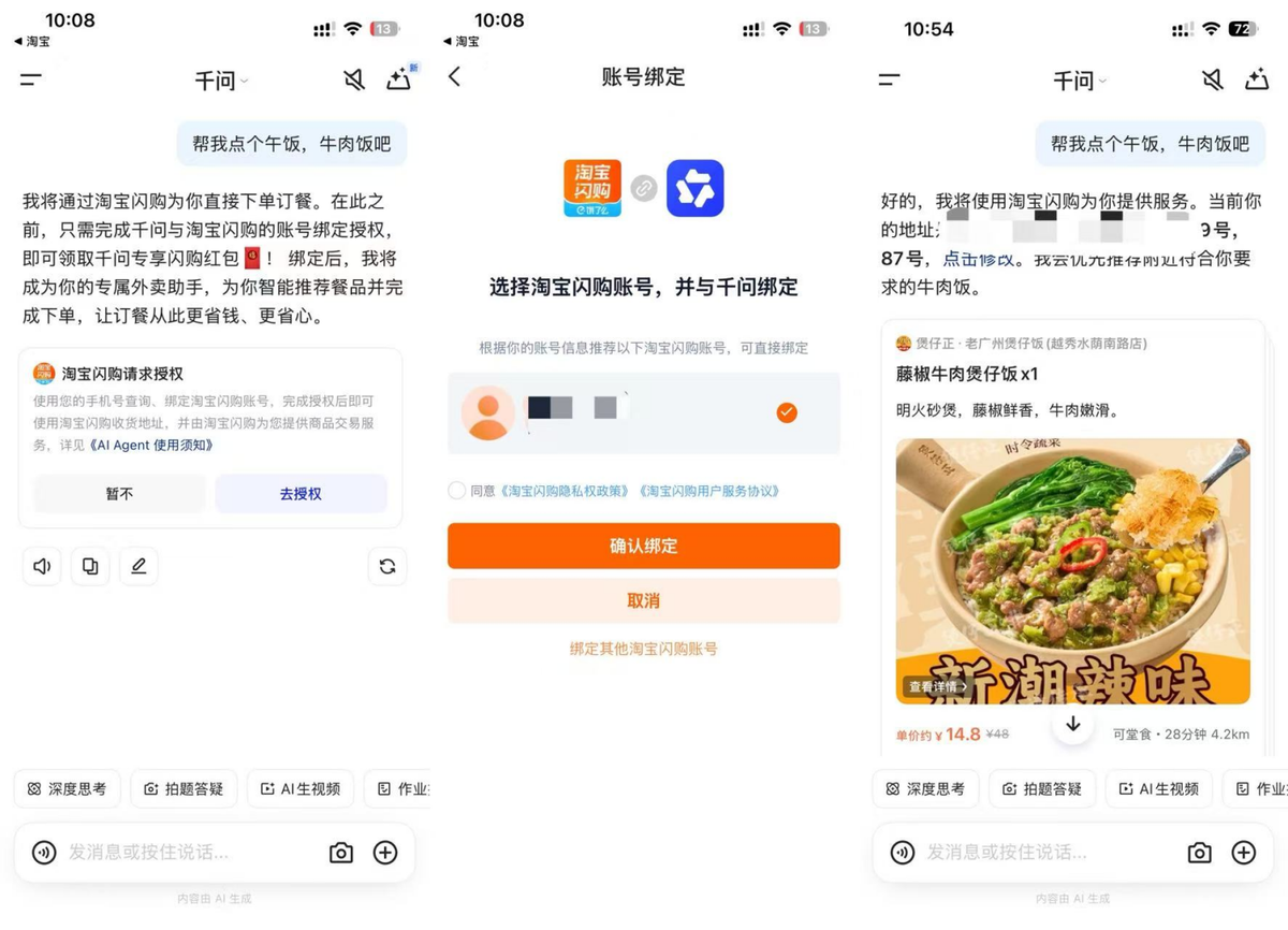(Qianwen integrated with Taobao Flash Sales to support "ordering food delivery with one sentence," image source: Leikeji)