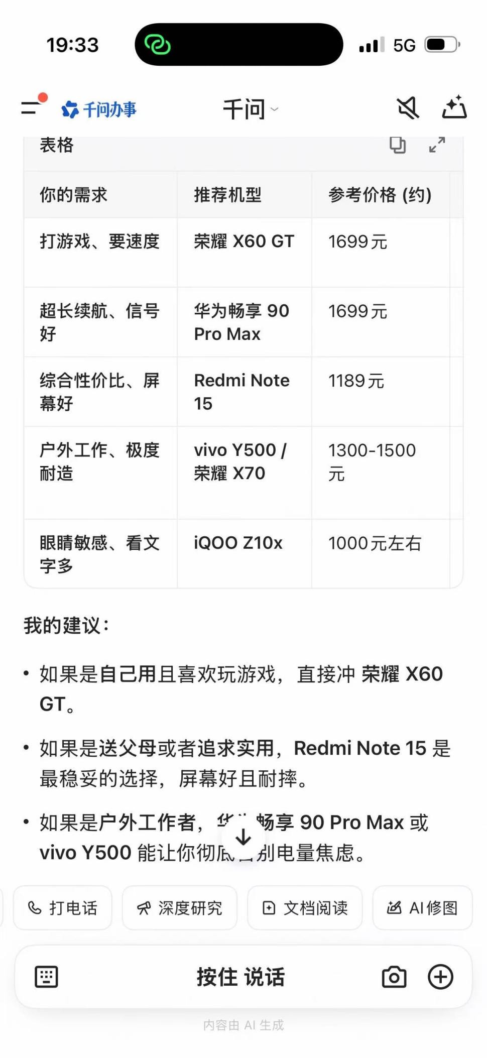 However, the issue remains—Qianwen has yet to fully connect with Taobao/Tmall's product purchasing link. It can effectively understand complex requests like "I want to buy a robot vacuum for my parents' home, with a budget of 2,000 to 4,000 yuan, and they have a dog," proactively inferring implicit requirements such as "easy to use" and "high-temperature sterilization" and even offering product suggestions. Yet, it cannot facilitate direct purchases.