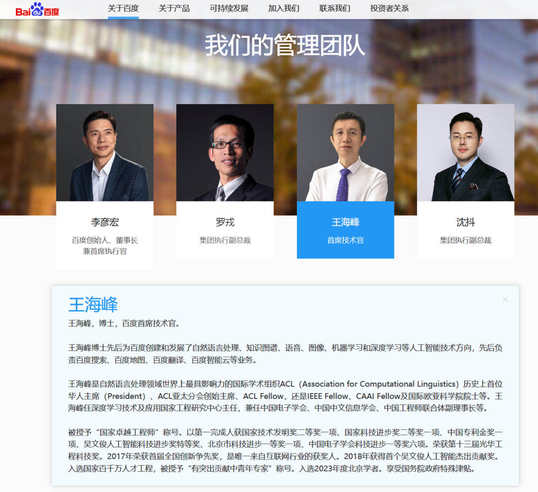 Public information shows that over the eight years from 2018 to 2025, Wang Haifeng was one of the executives who partnered with Li Yanhong in speeches at Baidu's AI Developer Conference most frequently. He joined Baidu in 2010 and became the company's second CTO in history in 2019. He was also the first Chinese president of ACL and had been shortlisted three times for membership in the Chinese Academy of Engineering, possessing strong technical capabilities. Li Yanhong once praised him as an "excellent representative of Baidu's simple and reliable culture."