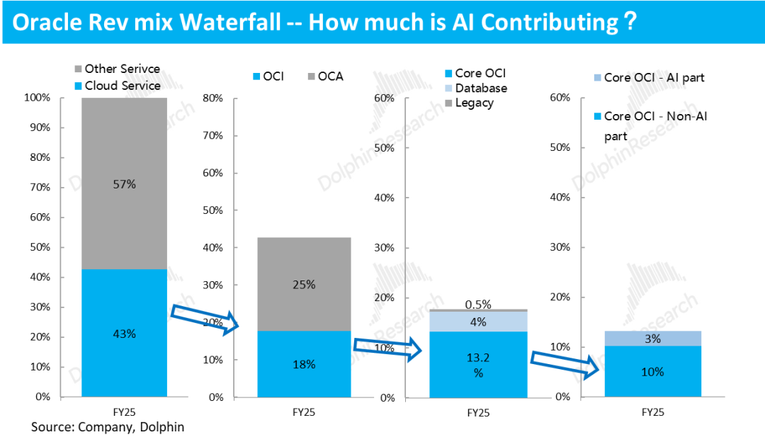 For the final valuation, following the framework established by Dolphin Research at the beginning, we divide the analysis into two parts: (1) all businesses except AI computing leasing, including three legacy businesses, the OCA SaaS business, and the non-AI computing leasing portion of the OCI segment; and (2) only the AI computing leasing business.
