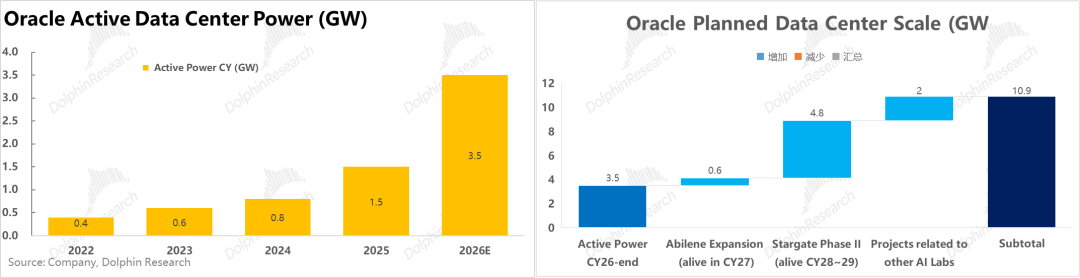 So, how much computing power has Oracle currently deployed or planned in its data centers? Referencing market forecasts, the company had approximately 3.5GW of deployed computing power by the end of 2026. The planned computing power to be deployed after 2026 is approximately 7.4GW—including 0.6GW from the Alibene project expansion, approximately 4.8GW from the Stargate Phase II stage, and a combined total of approximately 2GW from collaborations with other AI Labs such as xAI and Meta (this portion lacks public disclosure for verification).