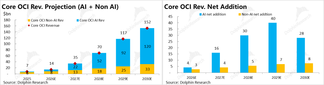 Further breaking down Core OCI based on whether it is related to AI demand, it can be divided into 'AI-related' and 'non-AI-related' parts.