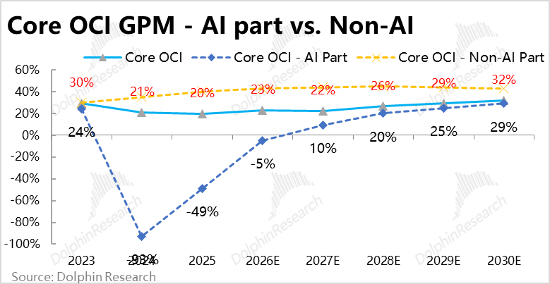 For the gross margins of these non-Core OCI segments, our baseline expectation is that they will remain stable or slightly decline. This is one of the main differences between Dolphin Research's expectations and market expectations. The market expects traditional business gross margins to steadily improve, while we believe a more cautious approach is warranted.