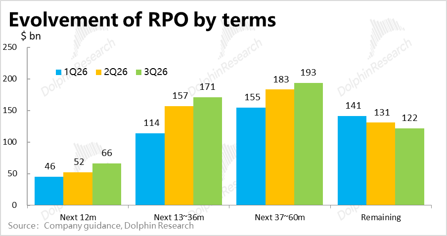 (Note: The RPO does not have official disclosure on which specific businesses it comes from, but referencing some investment bank views, at least 90% is from the OCI segment, and the proportion from OCI in longer-term RPOs should be higher. Therefore, for analysis convenience, RPOs beyond 12 months are all considered to be from the OCI segment, especially Core OCI IaaS-type businesses.)