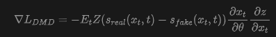 Late Training: Model Distillation. During late distillation, this paper applies modified Distribution Matching Distillation (DMD) to accelerate inference in WorldStereo 2.0. DMD extends the idea of Variational Score Distillation (VSD) by distilling a few-step diffusion student through an approximate Kullback-Liebler (KL) divergence constructed from the difference between a frozen real score function and a trainable pseudo-score function . The update gradient for DMD can be written as: