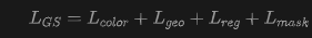 where the ground truth image is sampled from panoramas and generated keyframe-segmented view clusters. To enforce geometric consistency, this paper introduces a geometric loss:
