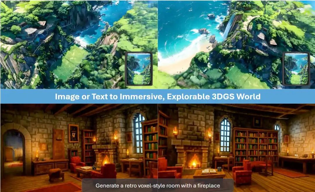 Supports diverse input modalities such as text prompts, single-view images, multi-view images, and videos to generate high-fidelity, navigable 3D Gaussian Splatting (3DGS) scenes.