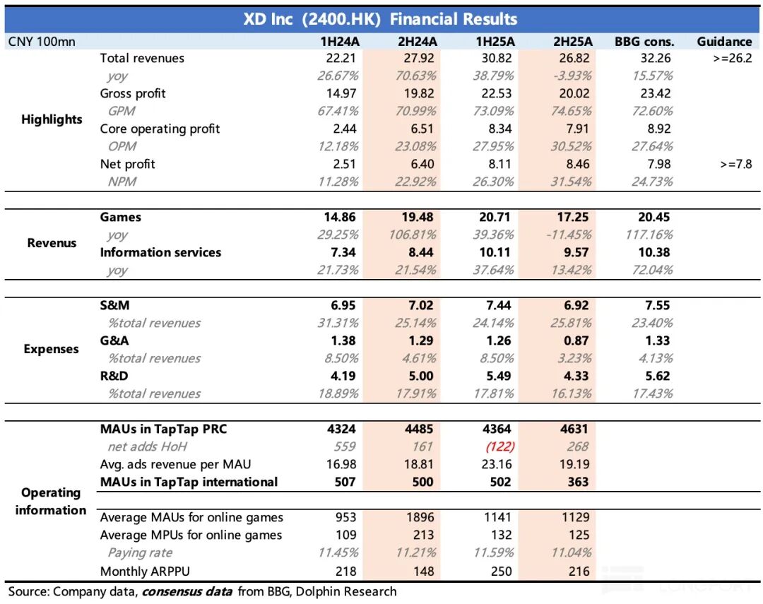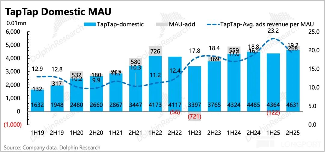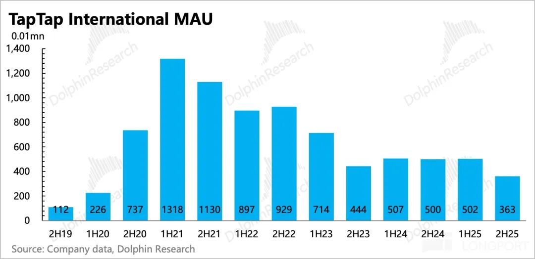 However, MAUs are expected to post significant net growth in the second half (back-calculated from the annual average), likely driven by the July 2025 launch of TapTap mini-games. This year, the performance of new titles like Heartbeat Town International and Ragnarok Online: Guardians of Love 2 will determine whether user scale can continue expanding, thereby reinforcing TapTap's potential as a distribution and publicity platform.