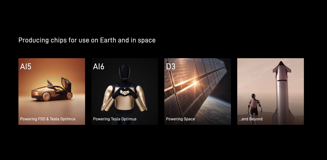 Chip directions: Two distinct product categories. One is edge inference chips, primarily for Optimus humanoid robots and Tesla vehicles—Musk predicts annual humanoid robot production will reach 1 to 10 billion units, 10 to 100 times the automotive market. The other is space-dedicated high-power chips, optimized for radiation hardening and space thermal management.
