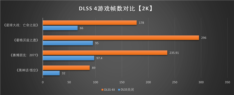 In Star Wars Jedi: Fallen Order, with DLSS 4's highest 4X level multi-frame generation enabled, the test frame rate was 178 at 2K resolution and 214 at 1080P resolution.