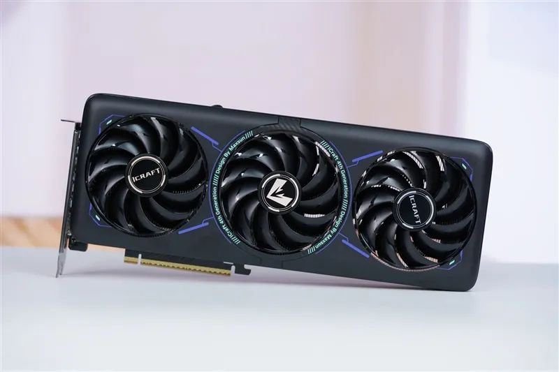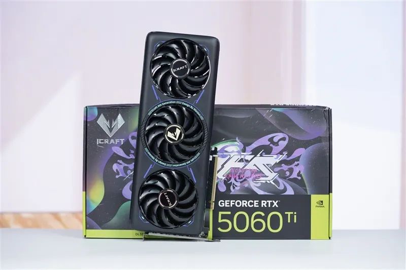 The Maxsun GeForce RTX 5060 Ti iCraft OC 8GB graphics card retains the classic design of the iCraft Gamer's Heart series, with a unique dark rounded corner design and fluorescent lines printed on the surface.