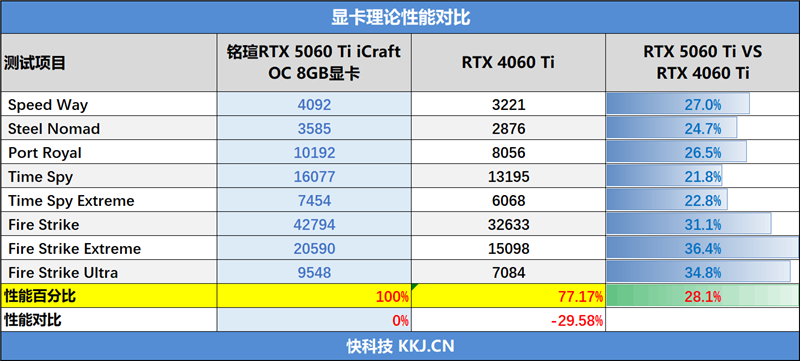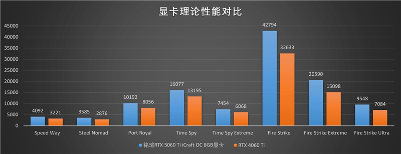 The Maxsun GeForce RTX 5060 Ti iCraft OC 8GB graphics card showed significant performance improvements over the previous-generation RTX 4060 Ti in 3Dmark theoretical performance tests, with an average increase of around a quarter. The RTX 50 series' most important new feature, DLSS 4 technology, was also present, with DLSS 4 bringing over 900% frame rate improvements in 3Dmark tests.