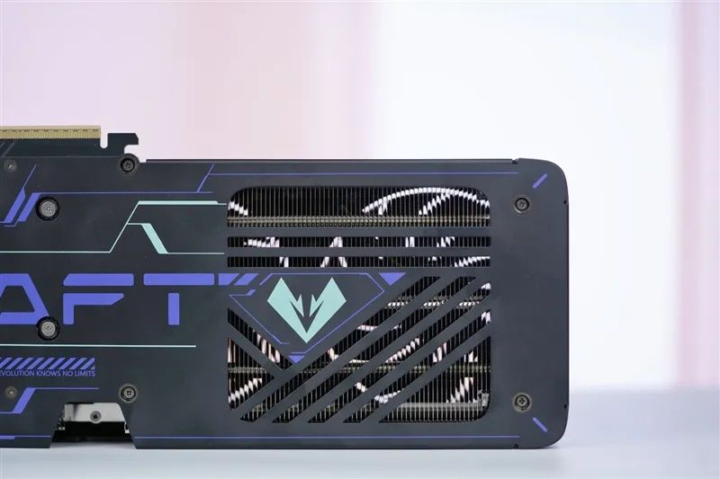Close-up of the cooling cutouts at the tail of the graphics card.