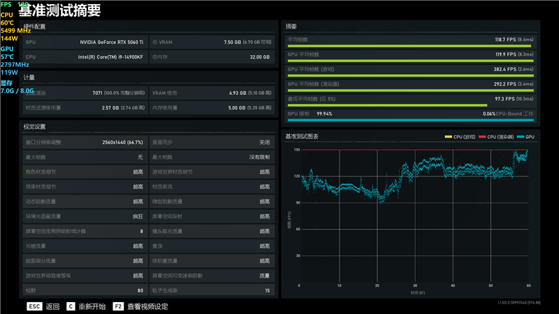 In Gears 5, using Ultra graphics quality for testing, the average frame rate was 118.7 at 2K resolution.